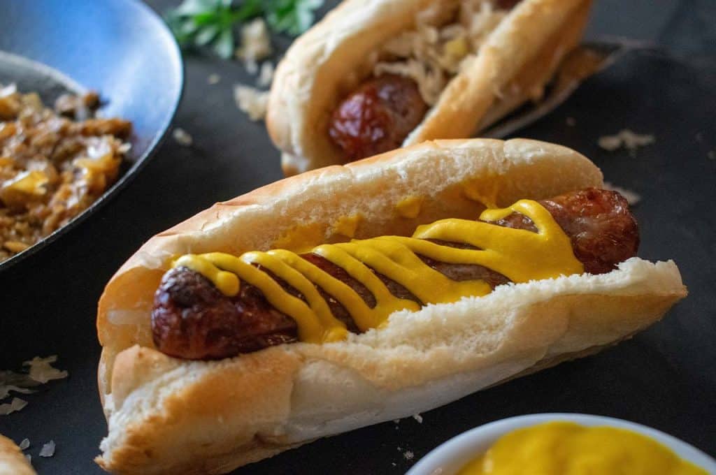 Deep-frying takes the hot dog somewhere decadent. Hot oil, around 350°F, wraps each dog in a shell of impossible crunch. The contrast between that crispy exterior and the juicy meat inside is pure indulgence. It’s rich, it’s heavy, and it’s absolutely worth doing now and then. Keep the toppings simple, mustard or relish, so they don’t compete. This is a hot dog as event.